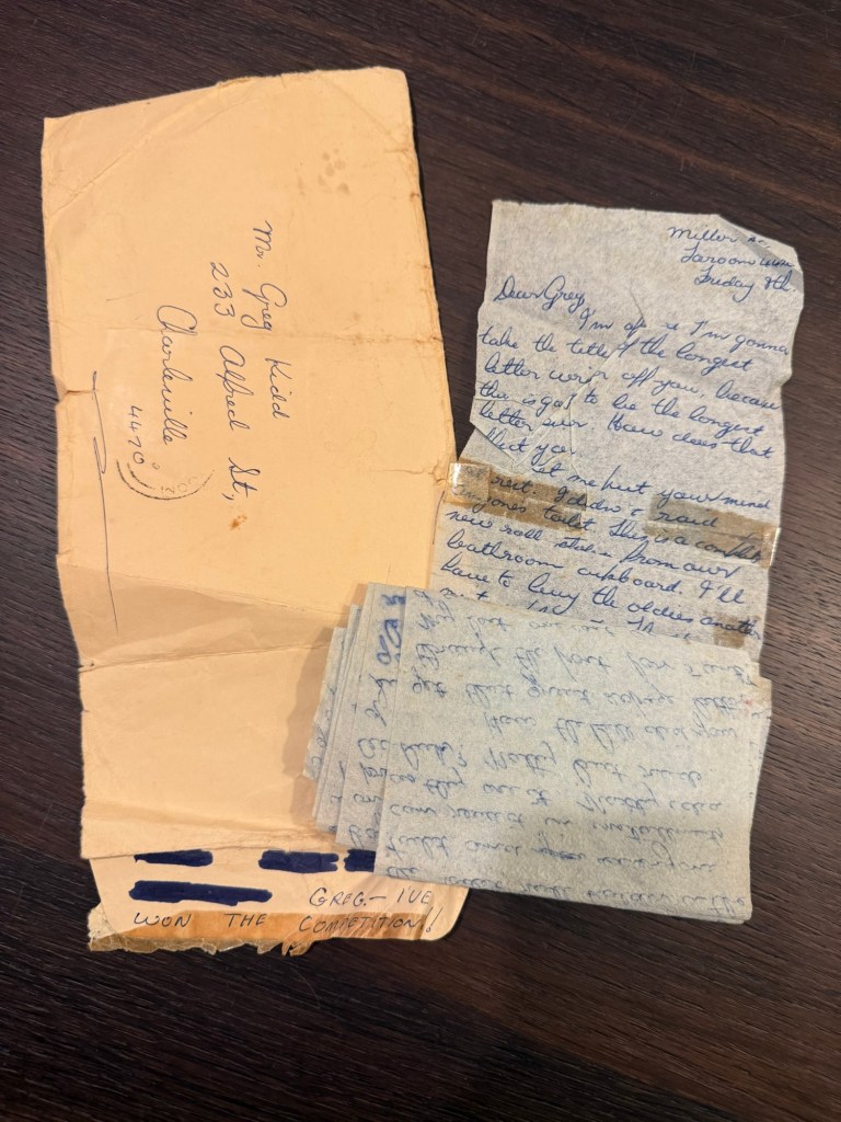 Now I enjoyed attending to correspondence with my parents and the few other regulars who included Hilary and Merryl Phipps, the Taroom cousins.